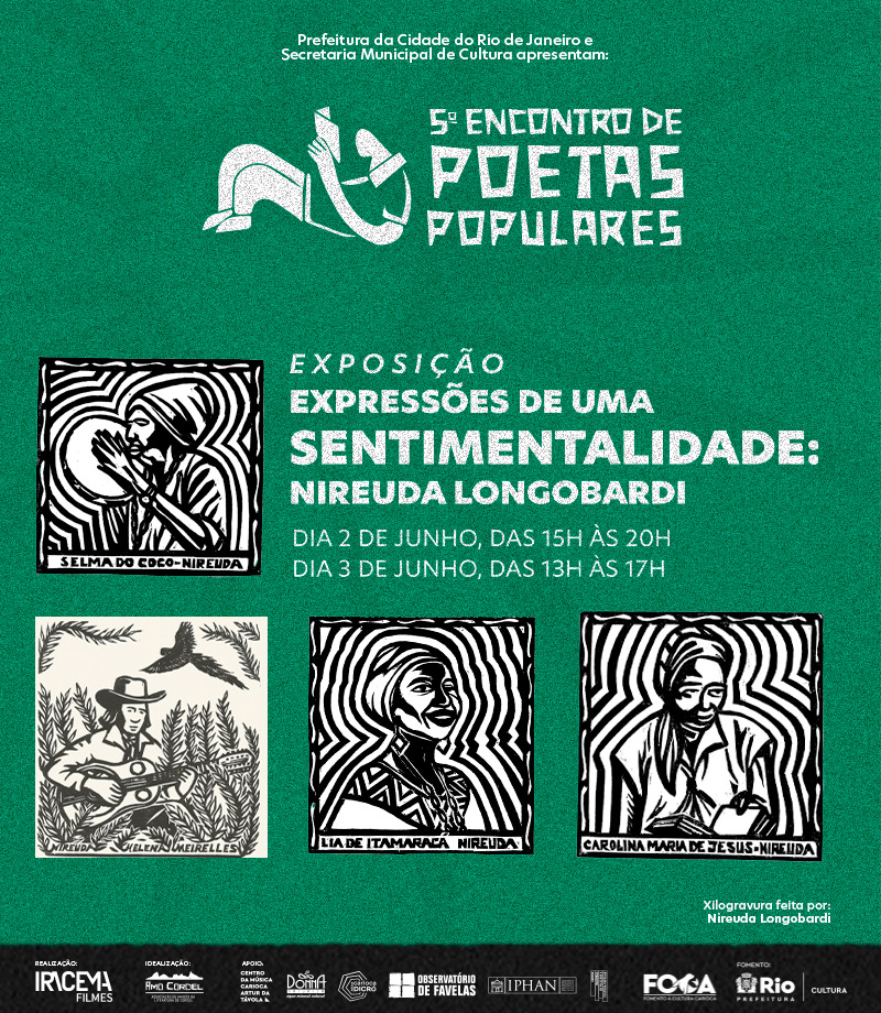 Também integrou o evento a exposição “Expressões de uma Sentimentalidade: Nireuda Longobardi”, reunindo xilogravuras com representações potentes de mulheres da cultura brasileira, como Selma do Coco, Lia de Itamaracá e Carolina Maria de Jesus.